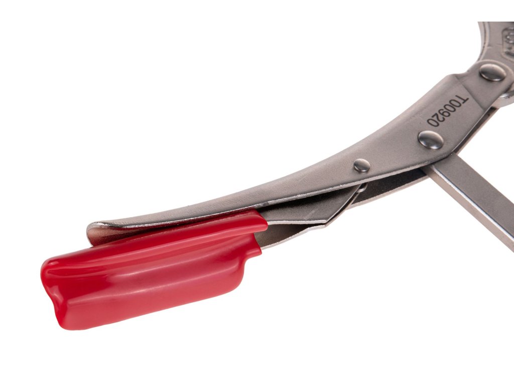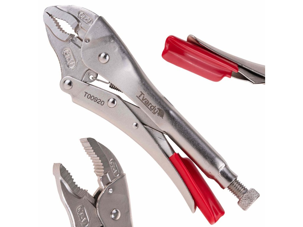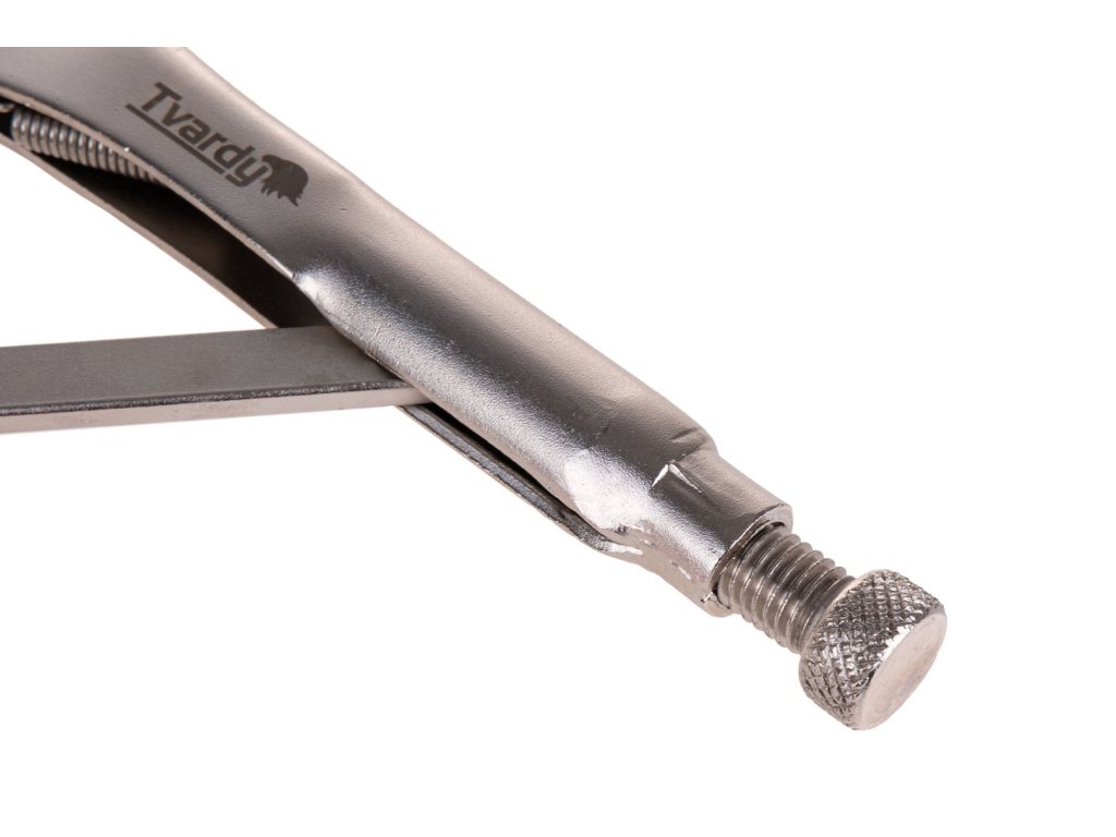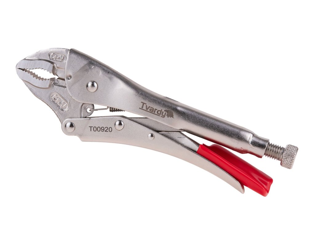 The universal locking pliers by Tvardy, 250 mm in length, are an indispensable tool in any workshop. Equipped with round jaws with a range of 0-40 mm, they ensure a firm grip and precise clamping.