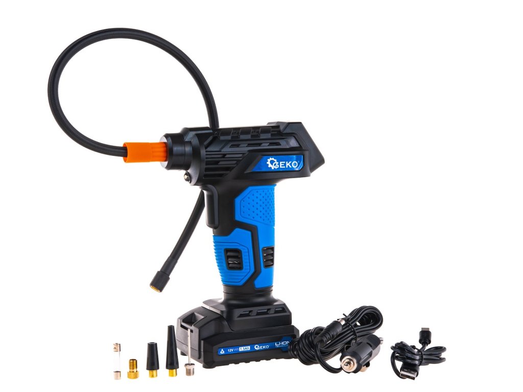 Tento 12V akumulátorový kompresor je mobilní a praktické řešení, které se snadno vejde do kufru auta, garážové skříně nebo dokonce i do batohu. Lehký, praktický, ale překvapivě výkonný – ideální pro rychlé nafouknutí pneumatik, míčů nebo nafukovacích matrací, ať jste kdekoli.
