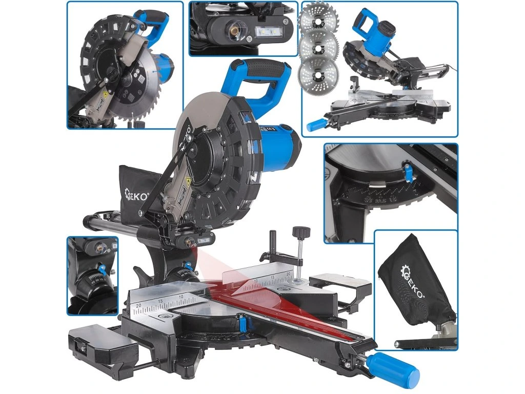 Naše zařízení umožňuje přesné řezání dřeva, překližky, panelů a dalších materiálů na bázi dřeva. Otočná základna umožňuje plynulé nastavení úhlu v rozsahu -45°/0°/45°, což zajišťuje přesnost a opakovatelnost každého řezu. Pokosová pila je také vybavena nastavením sklonu řezného kotouče v rozsahu 0°–45°.