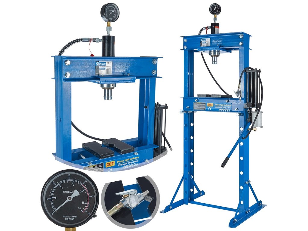 20tunový vzduchový/hydraulický lis s měřidlem