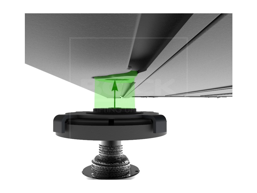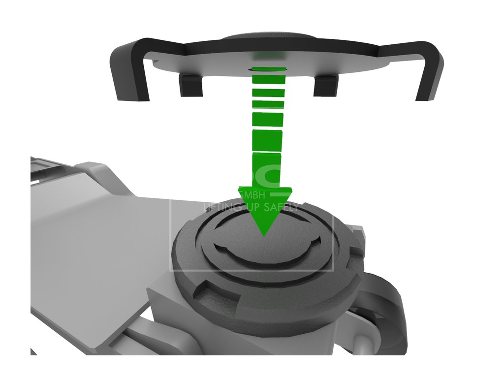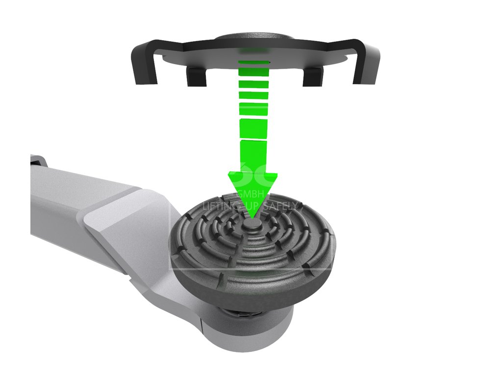 Adaptér se umístí přímo na gumovou podložku zvedáku (vhodný pro průměr 140-160 mm). Místo uprostřed adaptéru je zvedací bod. Po práci je adaptér lehce demontovatelný. Díky celkové výšce 13 mm je vhodný pro standardní i stroje se se zvýšenou zvedací kapacitou.