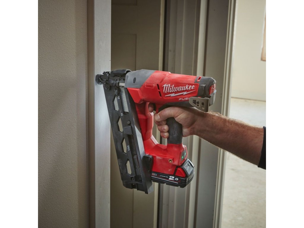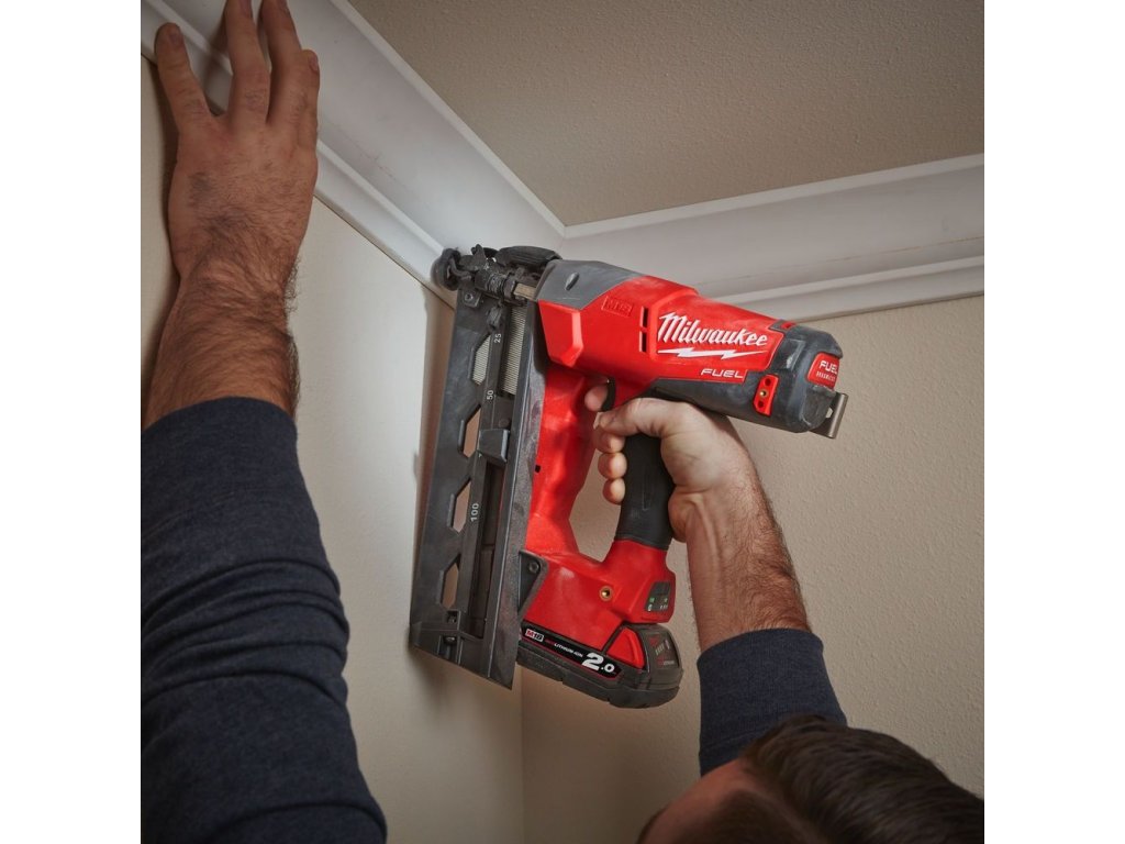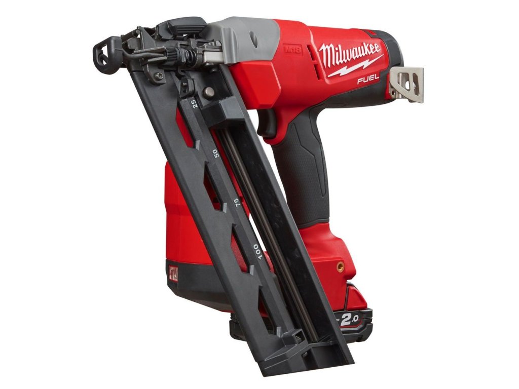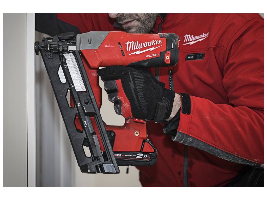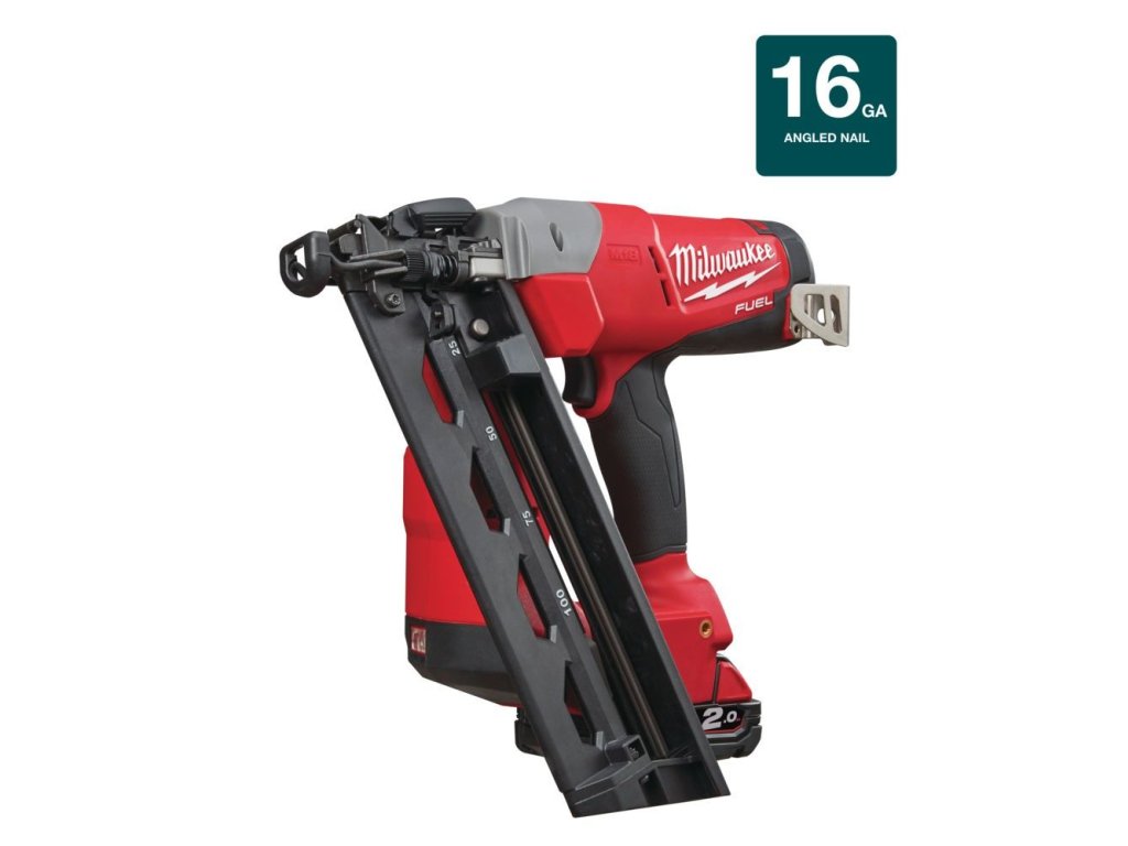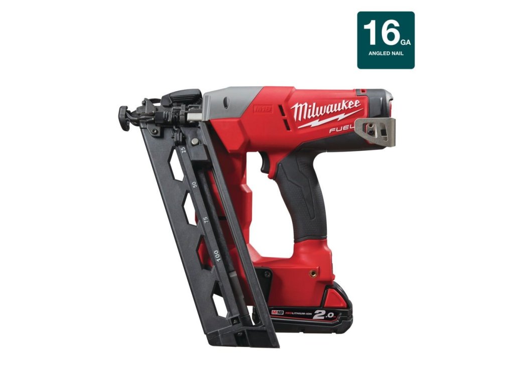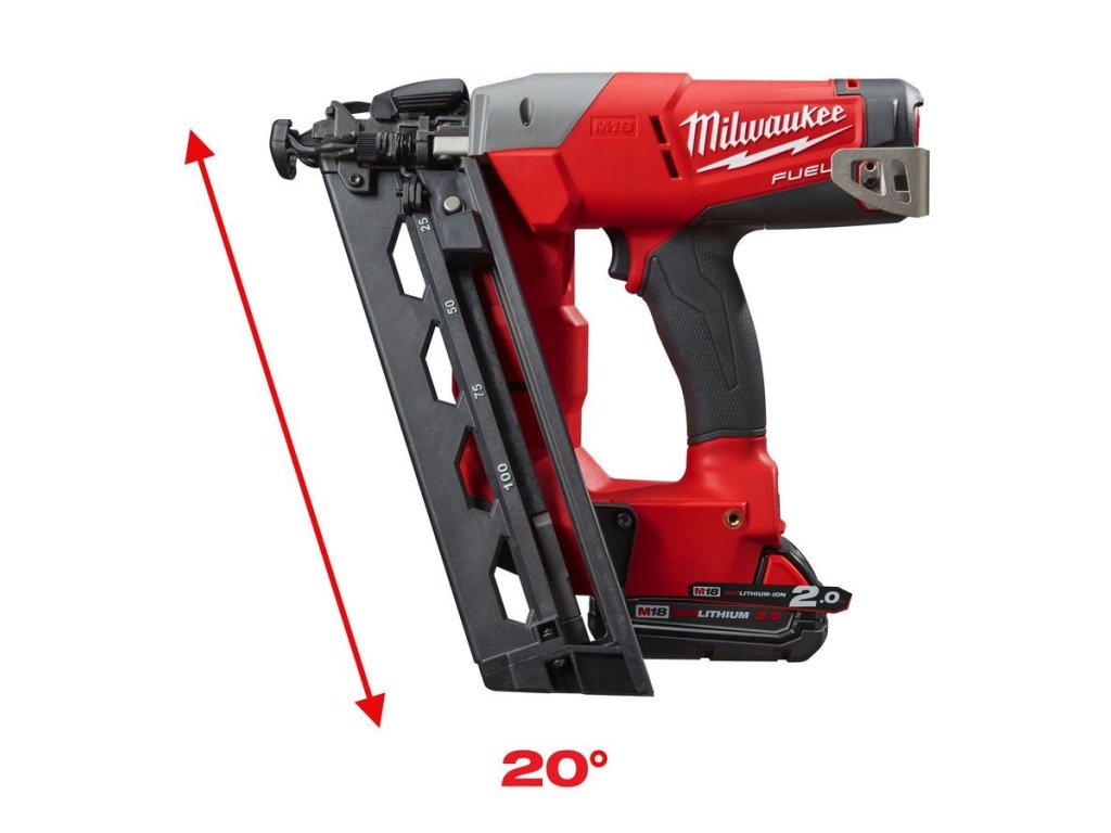 Akumulátorová – bateriová pistole na nastřelování hřebíků, velký zásobník na 110 kusů hřebíků, sada se dvěma bateriemi 2,0 Ah a rychlonabíječkou v bytelném kufru – Milwaukee M18 CN16GA-202X