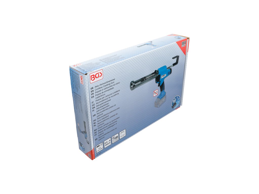 Výkonný, kompaktní akumulátorový lis na běžné kartuše (patrony) s obsahem 310 ml, pro bateriový systém BGS – BGS Technic 7362