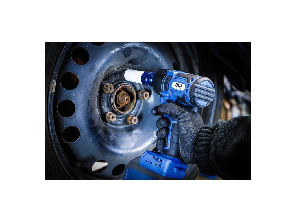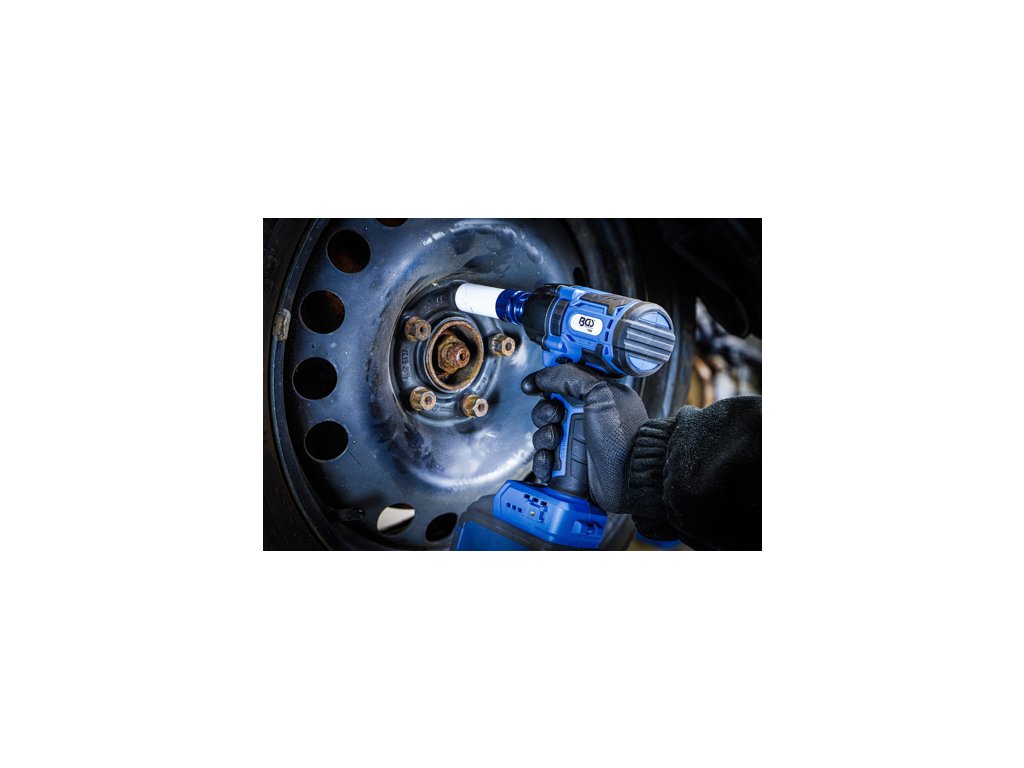 Výkonný, kompaktní akumulátorový rázový utahovák, vodící čtyřhran 1/2", max. moment 400 Nm, bez akumulátoru a nabíječky, pro bateriový systém BGS – BGS Technic 7362