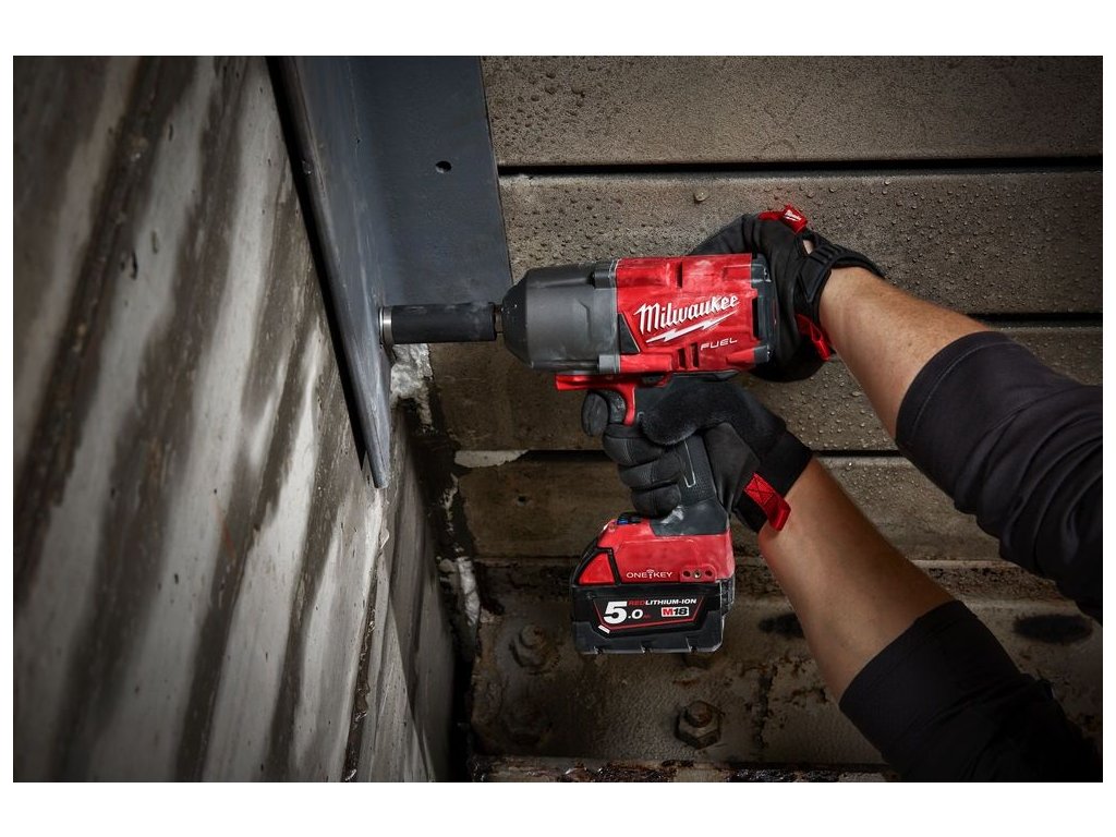 Rázový utahovák na AKU pohon, se čtyřhranem 3/4“, bezkartáčovým motorem a monitorovacím systémem ONE KEY, v sadě s rychlonabíječkou a dvěma akumulátory v bytelném kufru – Milwaukee M18 ONEFHIWF34-502X.