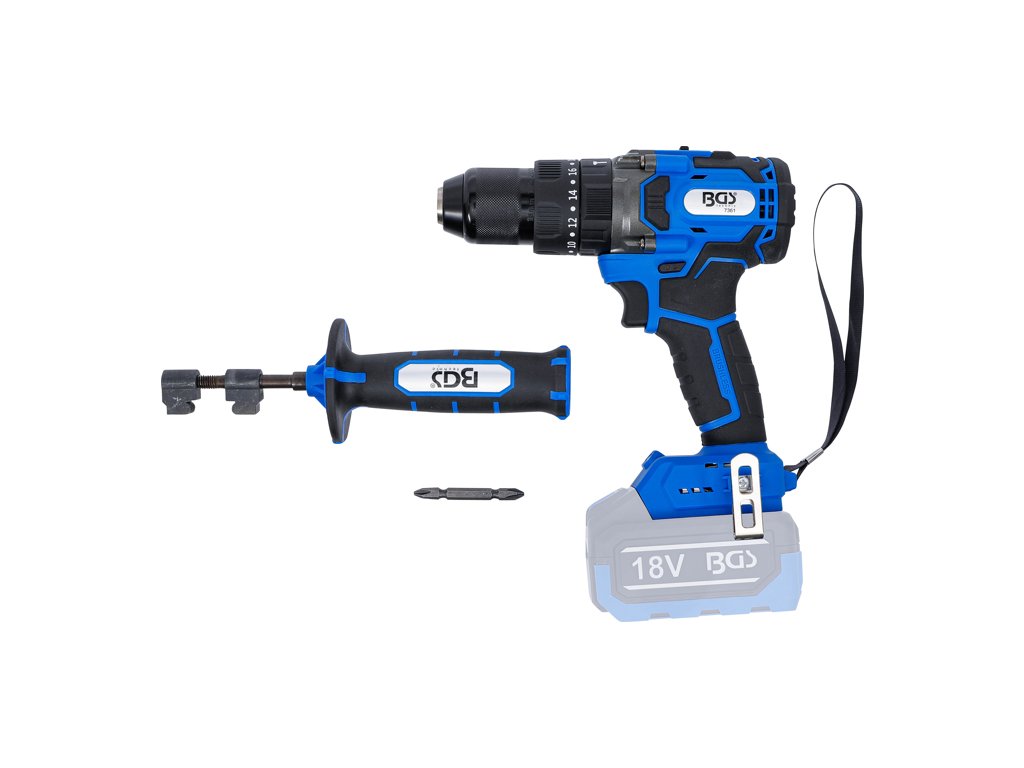 Výkonný, kompaktní akumulátorový vrtací šroubovák s příklepem a rukojetí, max. moment 80 Nm, bez akumulátoru a nabíječky, pro bateriový systém BGS – BGS Technic 7361