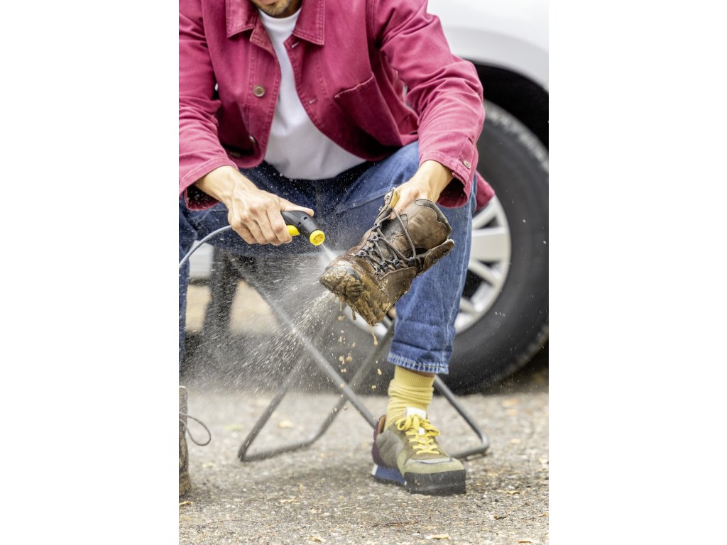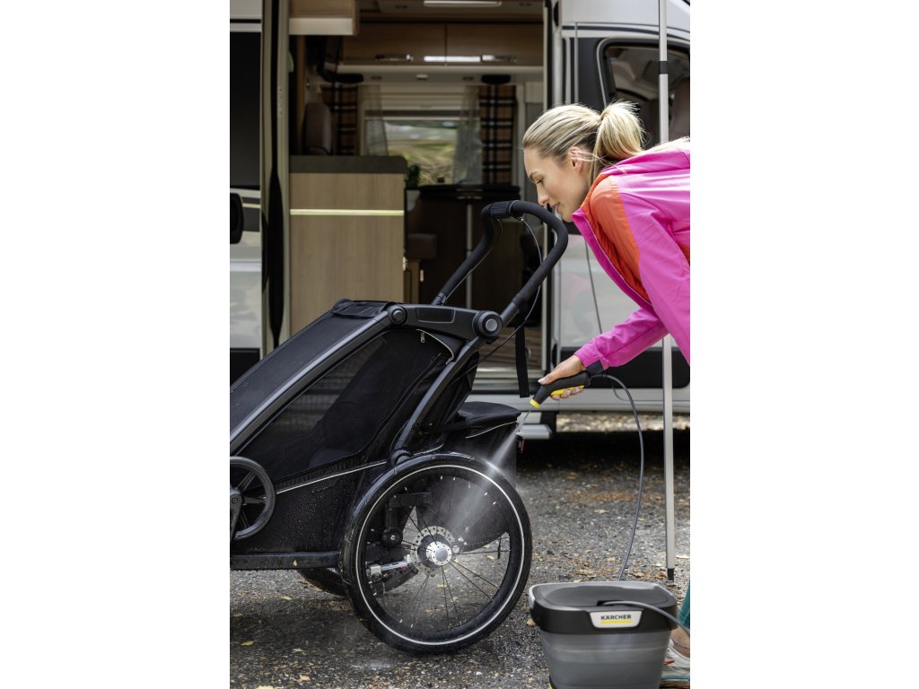 Díky lithium-iontovému akumulátoru je přístroj připraven k použití kdekoli a kdykoli a bez časově náročné přípravy: stačí jej naplnit vodou a začít. LED displej poskytuje informace o úrovni nabití baterie. Flexibilní tlaková hadice o délce 1,8 m zajišťuje optimální volnost pohybu při čištění. Ať už v kempu, po projížďce na kole nebo doma na zahradě – mobilní venkovní čistič je ideálním řešením pro rychlé čištění. Pro rozšíření oblastí použití je k dispozici široká škála příslušenství.