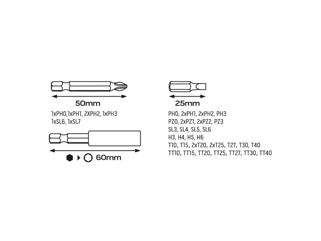 · Krátké šroubovací bity 36 ks