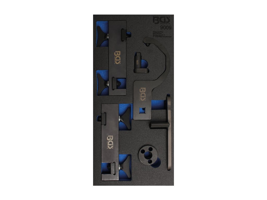 Aretační přípravky na rozvody (časování) 5litrových osmiválcových motorů koncernu JLR, sada v pěnové výložce – BGS technic 9009