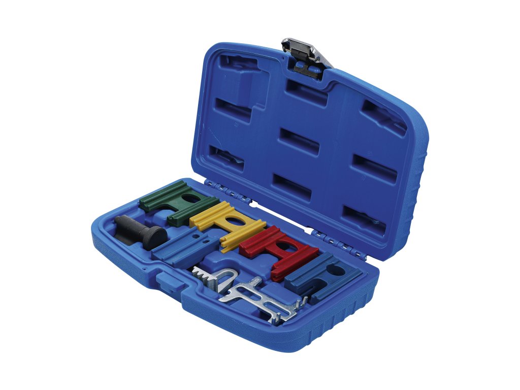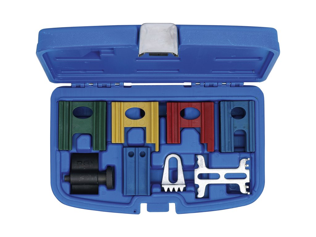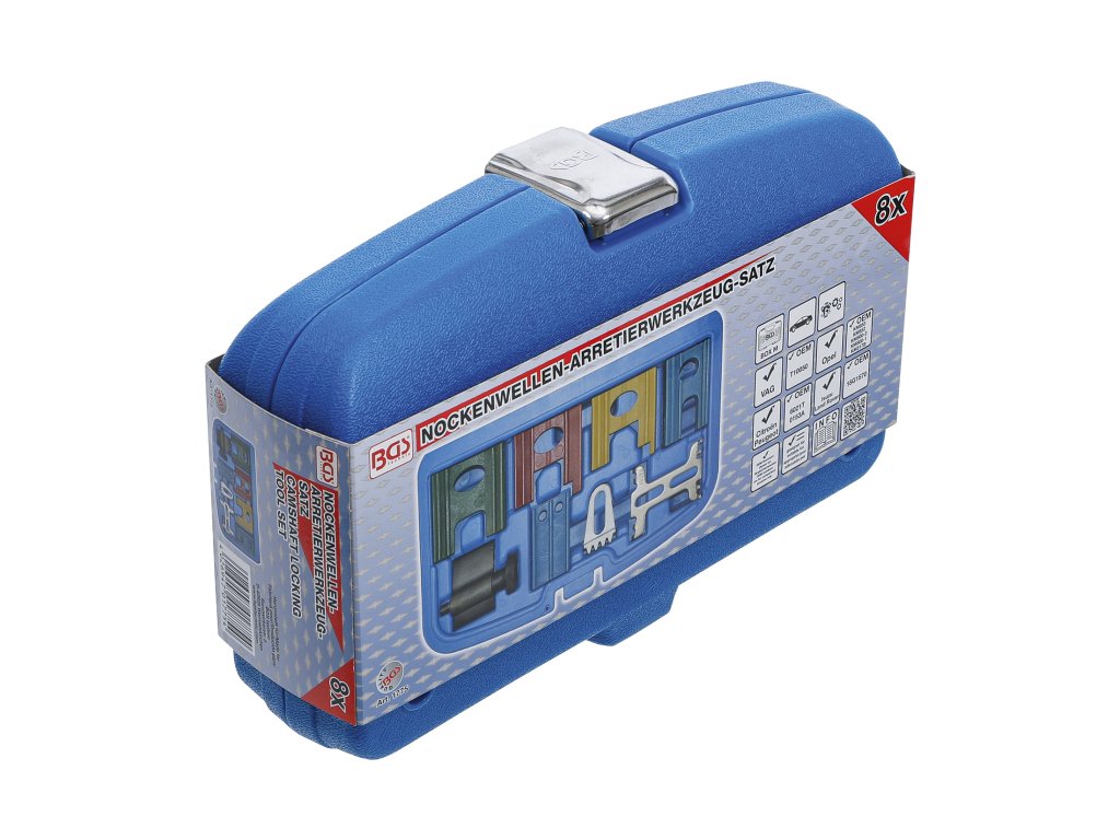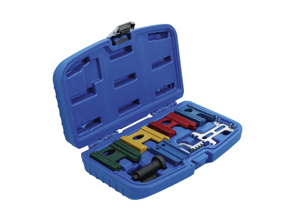 Přípravky na aretaci vačkových hřídelí benzínových i dieselových motorů, univerzální pro mnoho značek, sada v plastovém kufříku - BGS technic 1775