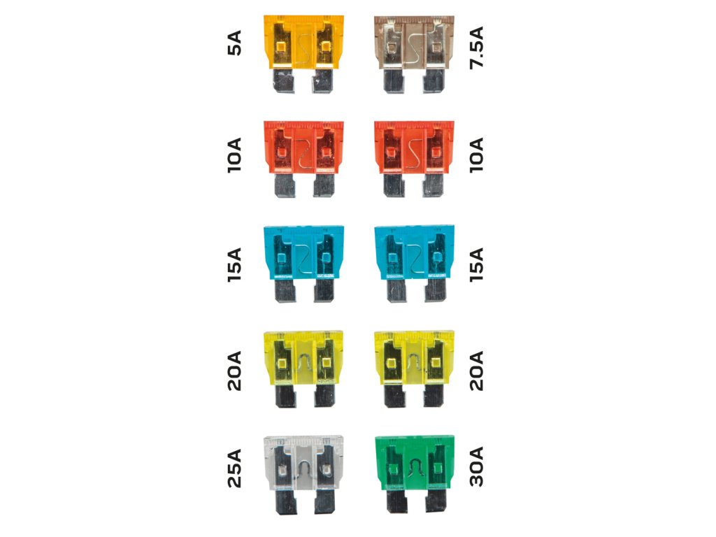 Autopojistky, 5-30 A, ploché nožové, polykarbonátové pouzdro, 10 ks - NEO tools 11-991.