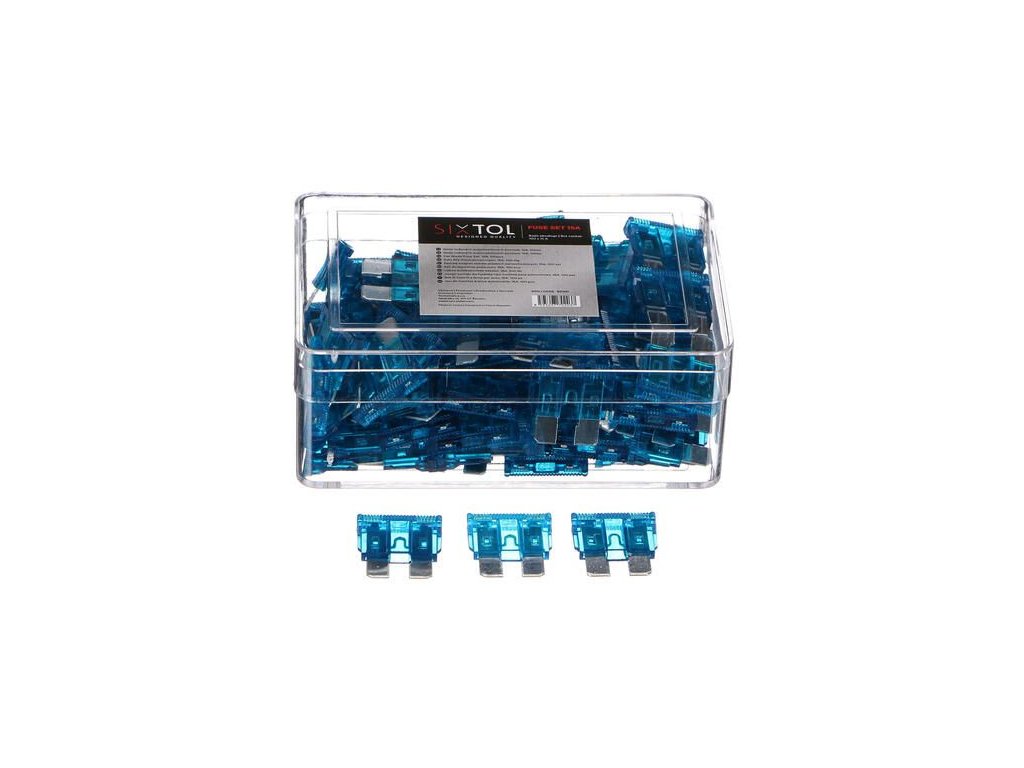 Sada plochých nožových autopojistek 15 A, modré – SIXTOL SX1131.