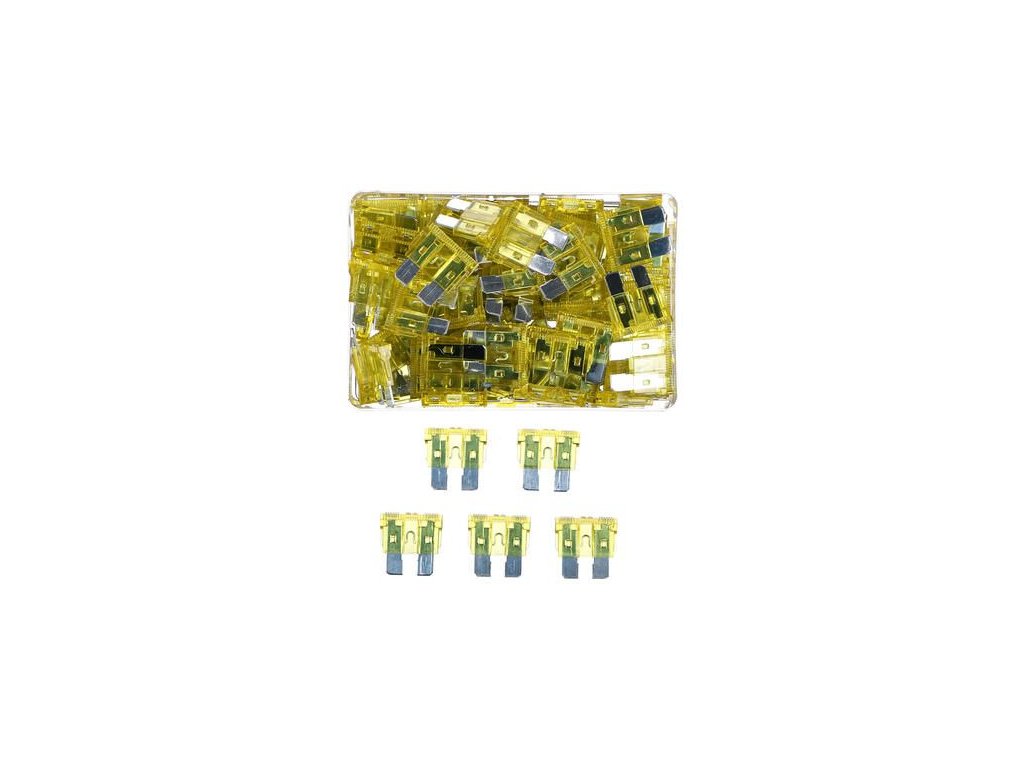 Autopojistky 20 A, ploché nožové, sada 100 ks - SIXTOL