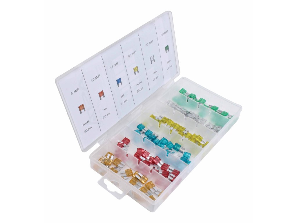 Pojistky mikro 2 (menší) ploché nožové, pro palubní elektroinstalaci automobilů a motorek, sada 120 kusů v plastové krabičce – ASTA A-TC518