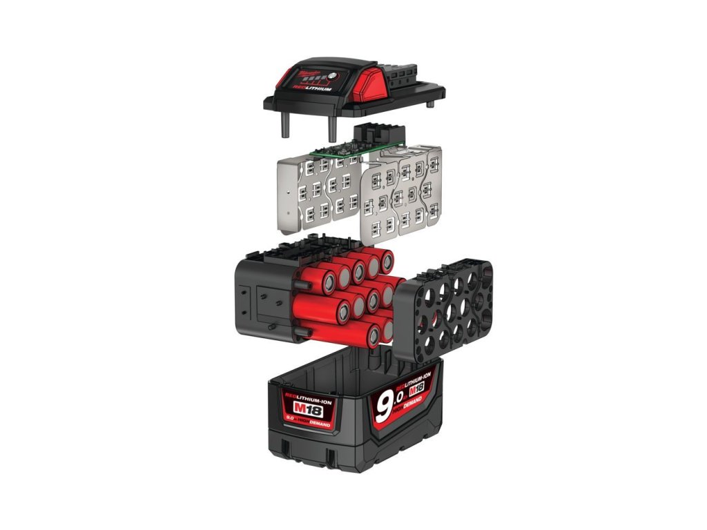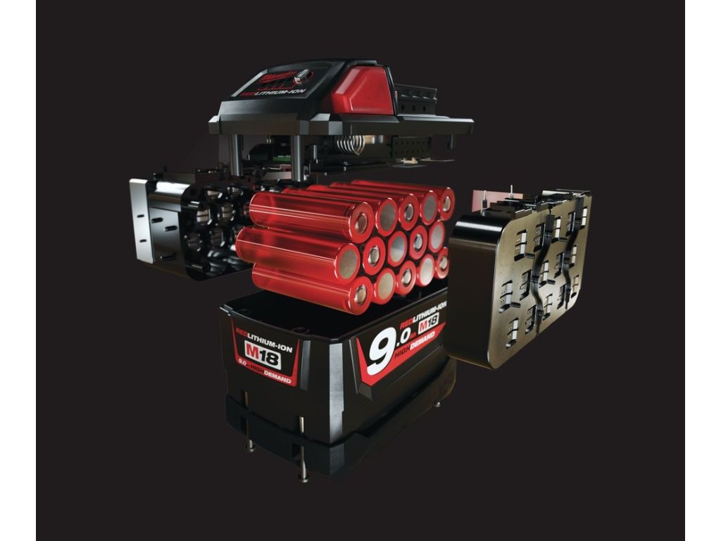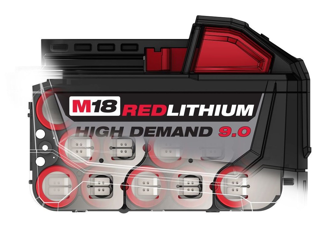 - baterie M18™ REDLITHIUM™ HIGH DEMAND™ 9,0 Ah zajistí až 5x delší dobu provozu, až o 35 % vyšší výkon a až o 60 % delší životnost baterie oproti jiným (standardním) 18 V lithium-iontovým bateriím. (Výsledky závisejí na nářadí a použití)