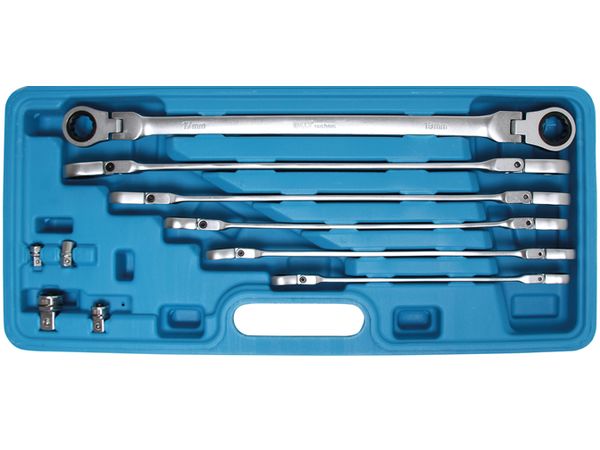 BGS Technic BGS 1541 Výkyvné očkové ráčnové klíče, OK 8 ÷ 19 mm. Sada 10 dílů