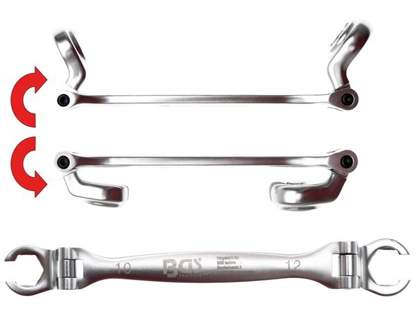 BGS Technic BGS 30413 Otevřený očkový klíč 10 x 12 mm, kloubový na brzdové potrubí