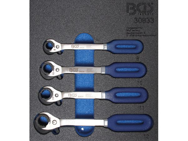 BGS Technic BGS 30833 Otevřené očkové klíče 8 ÷ 12 mm s ráčnou. Sada 4 dílů - modul pro dí