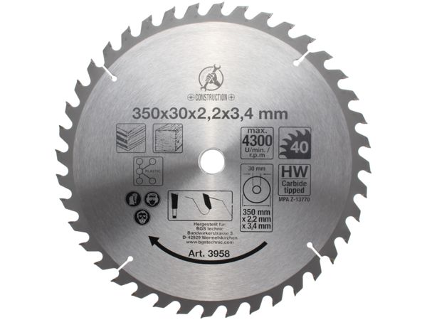 BGS Technic BGS 3958 Pilový kotouč ze slinutého karbidu průměr 350 x 30 x 3,4 mm 40 zubů
