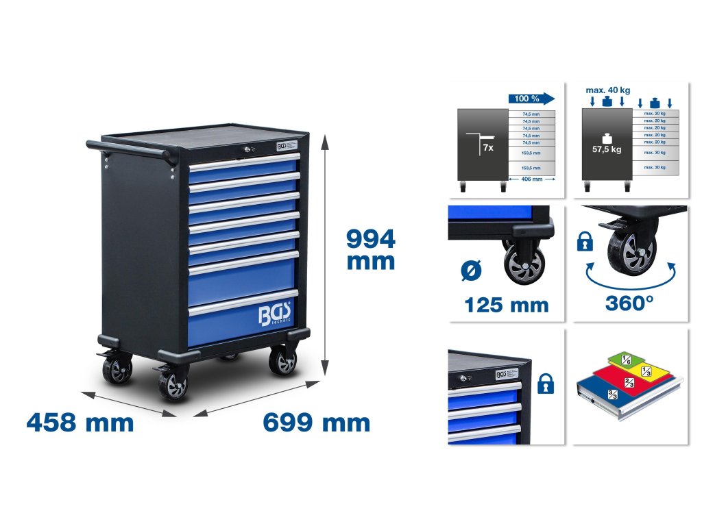 BGS Technic BGS 4204 Dílenský vozík, pojízdný, 7 zásuvek. Prázdný