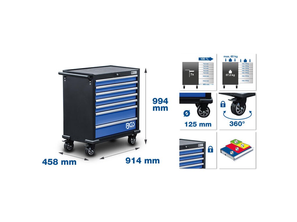 BGS Technic BGS 4205 Dílenský vozík XL, pojízdný, 7 zásuvek. Prázdný