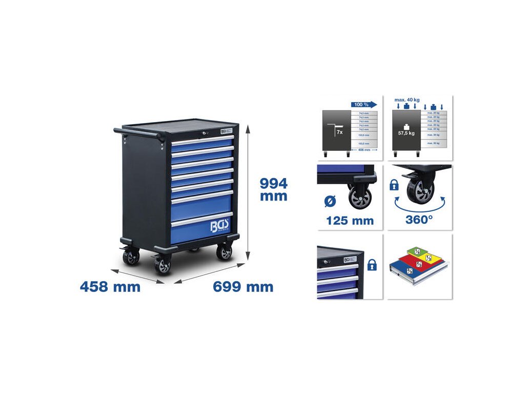 BGS Technic BGS 4207 Dílenský vozík, pojízdný, 7 zásuvek. Vybavený 263 ks nářadí