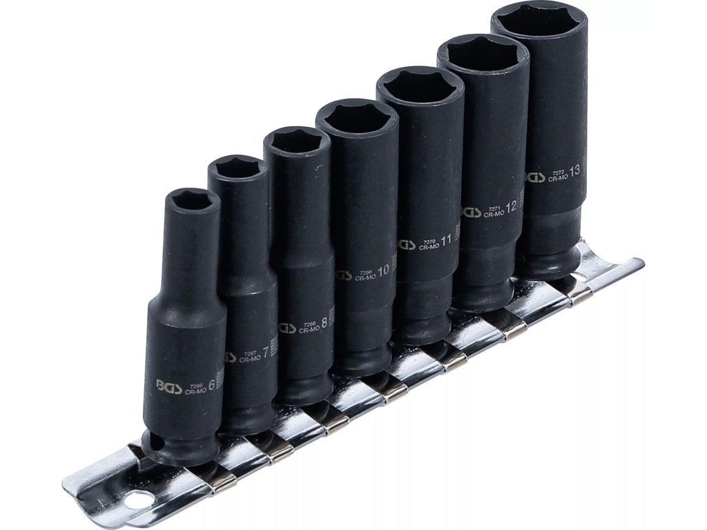 BGS Technic BGS 5299 Nástrčné hlavice 1/4" 6hran 6 ÷ 13 mm, rázové, prodloužené (Sada 7 dí
