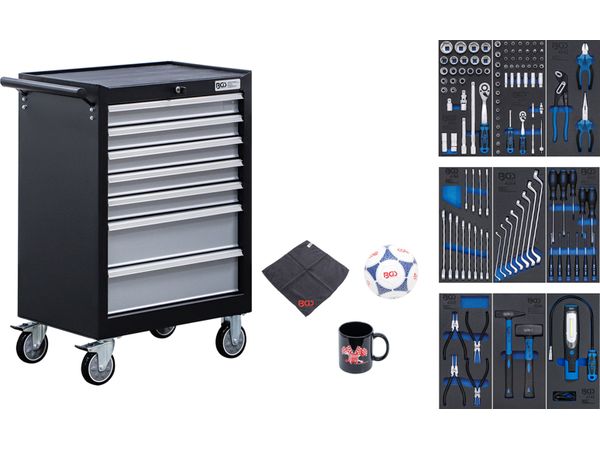 BGS Technic BGS 6061 Dílenský vozík, pojízdný, 7 zásuvek. Vybavený 120 ks nářadí