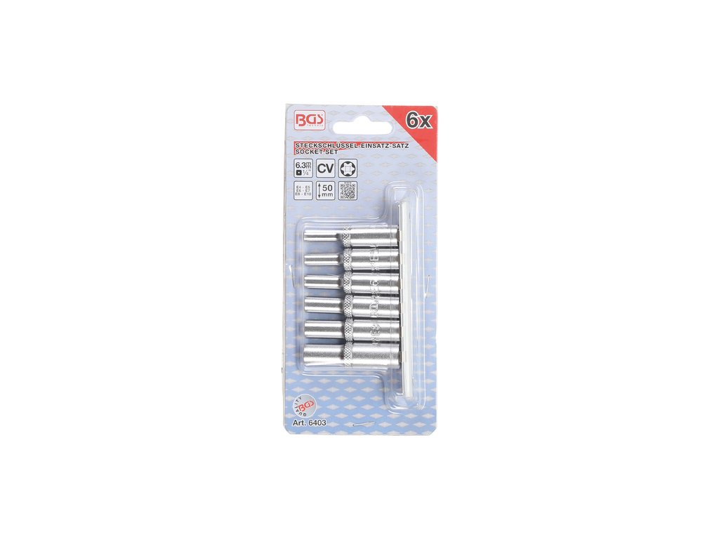BGS Technic BGS 6403 Nástrčné hlavice 1/4" E-profil E4 ÷ E10, prodloužené. Sada 6 dílů na