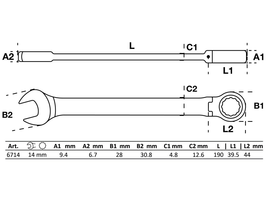 BGS Technic BGS 6714 Očkoplochý klíč 14 mm s ráčnou, kloubový