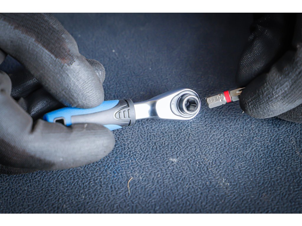 - 1x Ráčna na bity 1/4“, 72 zubů, přepínání vlevo-vpravo pomocí páčky
