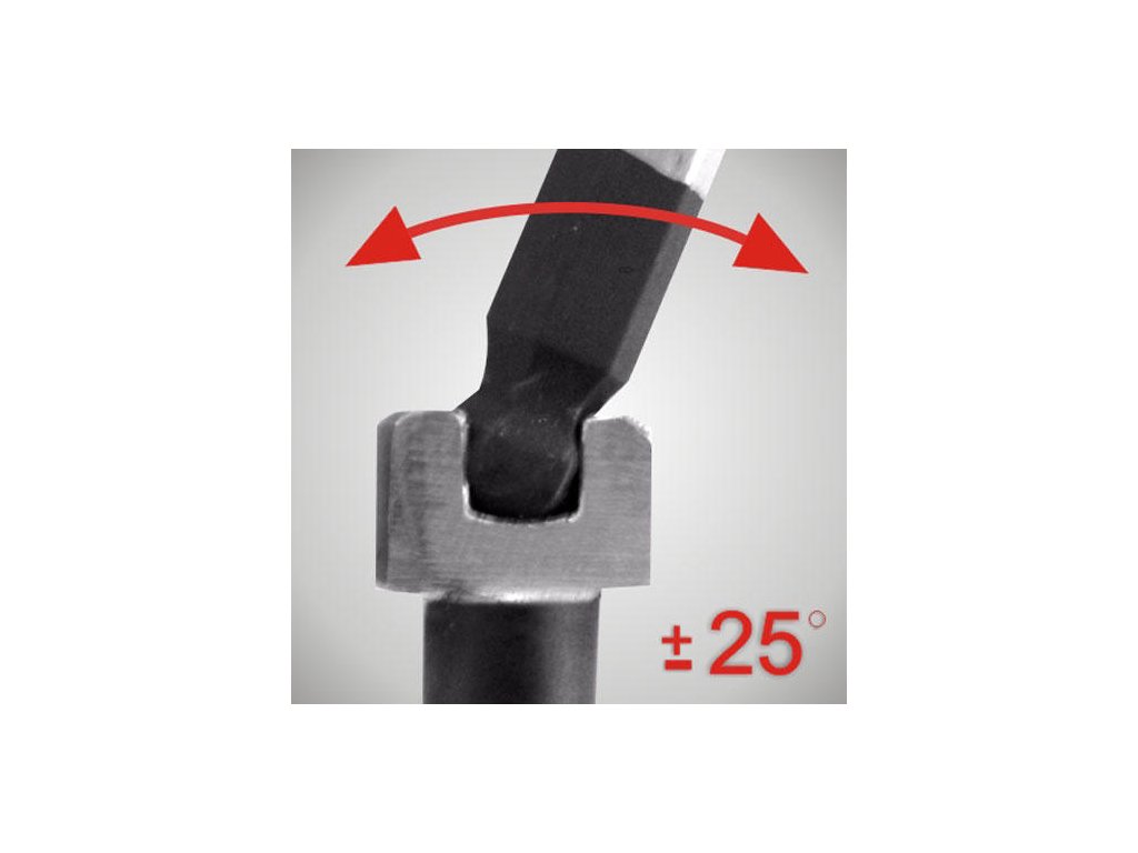 Díky kuličkovému zakončení lze pracovat i pod úhlem – vhodné pro práci se špatným přístupem.