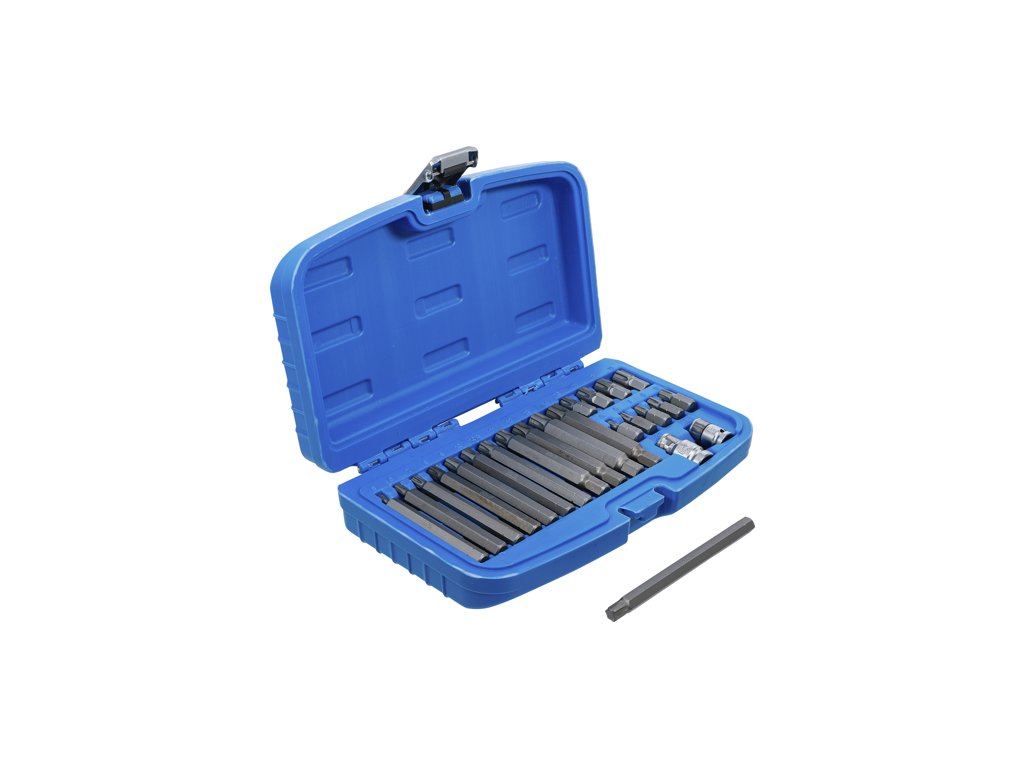 Souprava bitů s adaptéry pro uchycení na ráčnu, šroubovákovou rukojeť apod. Ideální pro autoservis, dílnu, domácnost a mnohá další místa.