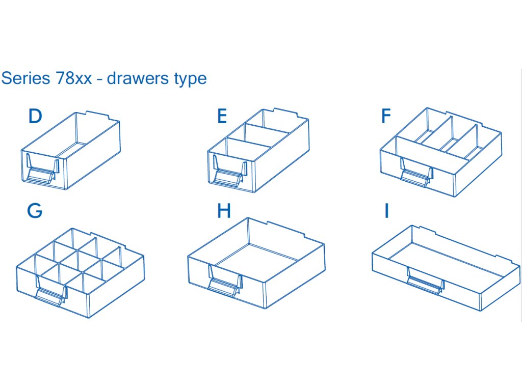 Závěsné skříňky lze volně postavit, stohovat jednu na druhou(podstava je opatřena plastovými nožičkami), nebo zavěsit na stěnu. Skříňky jsou vyráběny v různých velikostech a variantách velikosti a uspořádání zásuvek. Skříňky lze kombinovat a tvořit z nich kompaktní celky.
