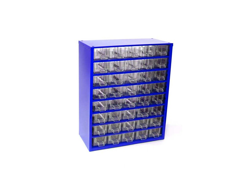 40 malých zásuvek (vhodné např. na spojovací materiál, malé kousky nářadí atd.).