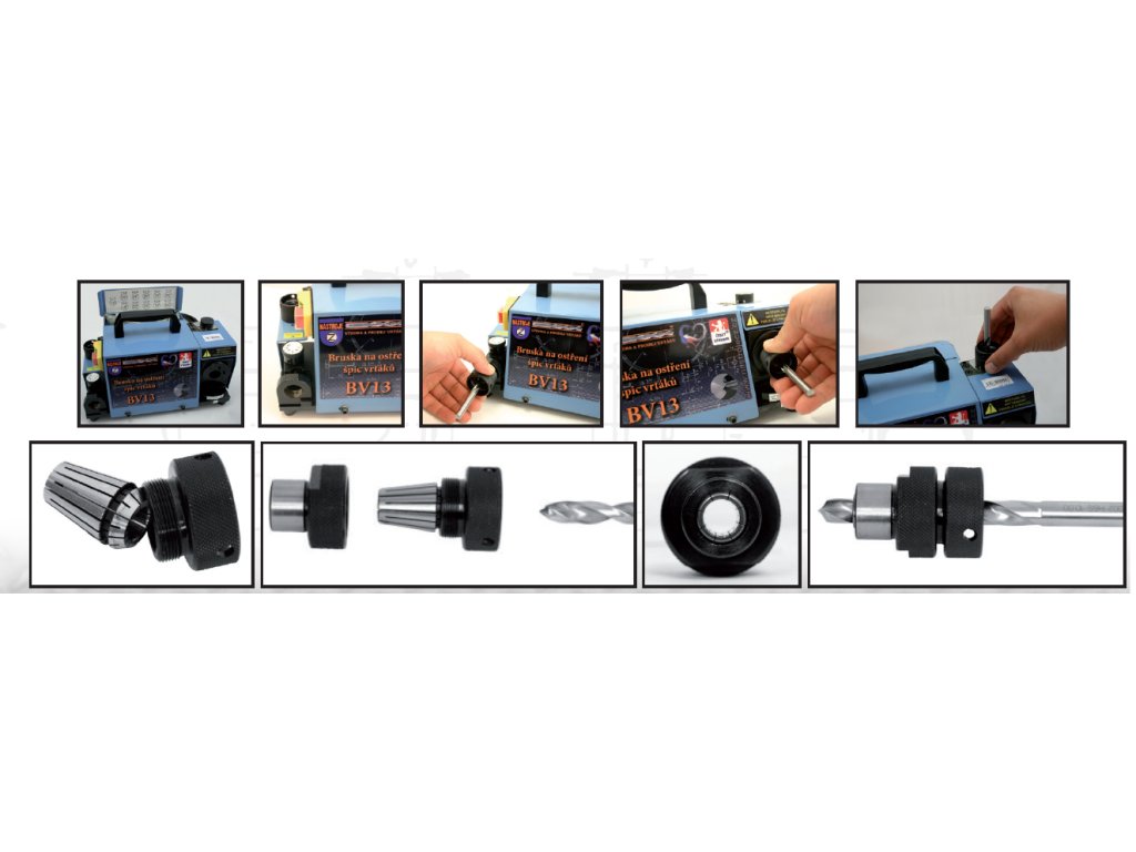 Bruska na spirálové pravotočivé vrtáky vyrobené z rychlořezných a cobaltových ocelí v rozsahu průměru 2-13mm.