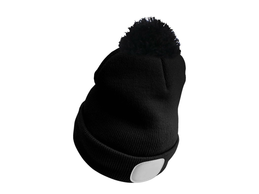 Čepice s čelovkou 180lm, nabíjecí, USB, univerzální velikost, bavlna/PE, černá s bambulkou