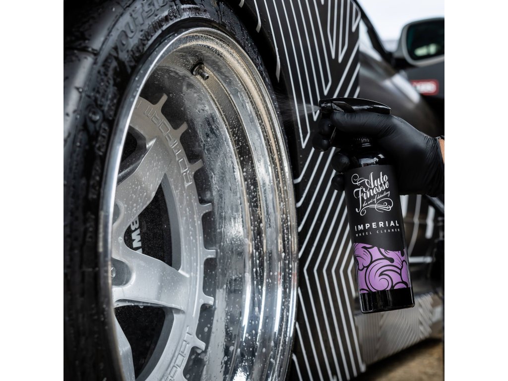 Oblíbený produkt mnoha profesionálů v oblasti detailingu automobilů, Imperial Wheel Cleaner, byl vyvinut jako vysoce účinný vodní čisticí prostředek, odmašťovač a odstraňovač brzdového prachu - s schopností odstranit nejsilnější sůl, silniční film a jiné potenciálně škodlivé kontaminace - přičemž je zcela bez kyselých složek, což ho činí dostatečně jemným pro pravidelné použití na všech běžných povrchových úpravách hliníkových kol - dokonce i na těch s dříve aplikovanými vosky, sealanty nebo nátěry.