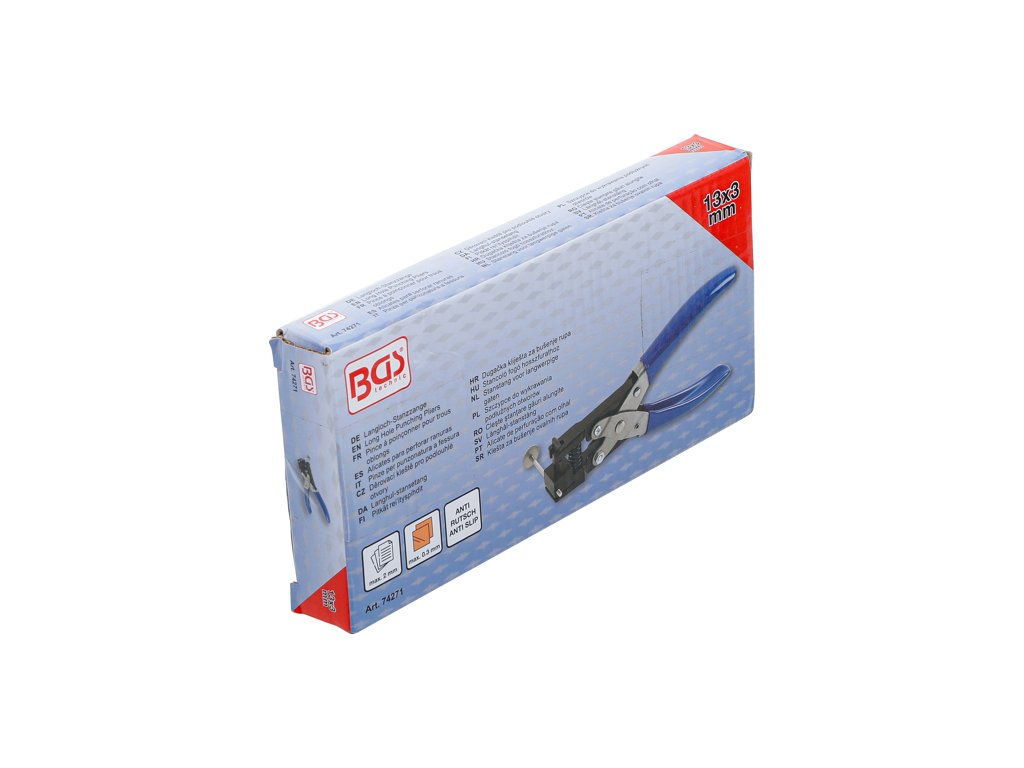 Děrovací kleště pro výrobu podlouhlých otvorů v rozměru 13 x 3 mm, délka kleští 175 mm – BGS Technic 74271