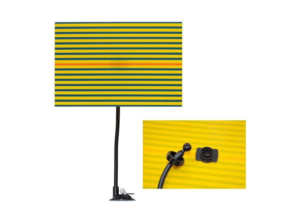 Plastová reflexní deska žluté barvy se 16 modrými a středovou červenou linkou a ohebným držákem s přísavkou se používá pro reflexi ke snadnější identifikaci důlků nebo promáčklin na karosérii.