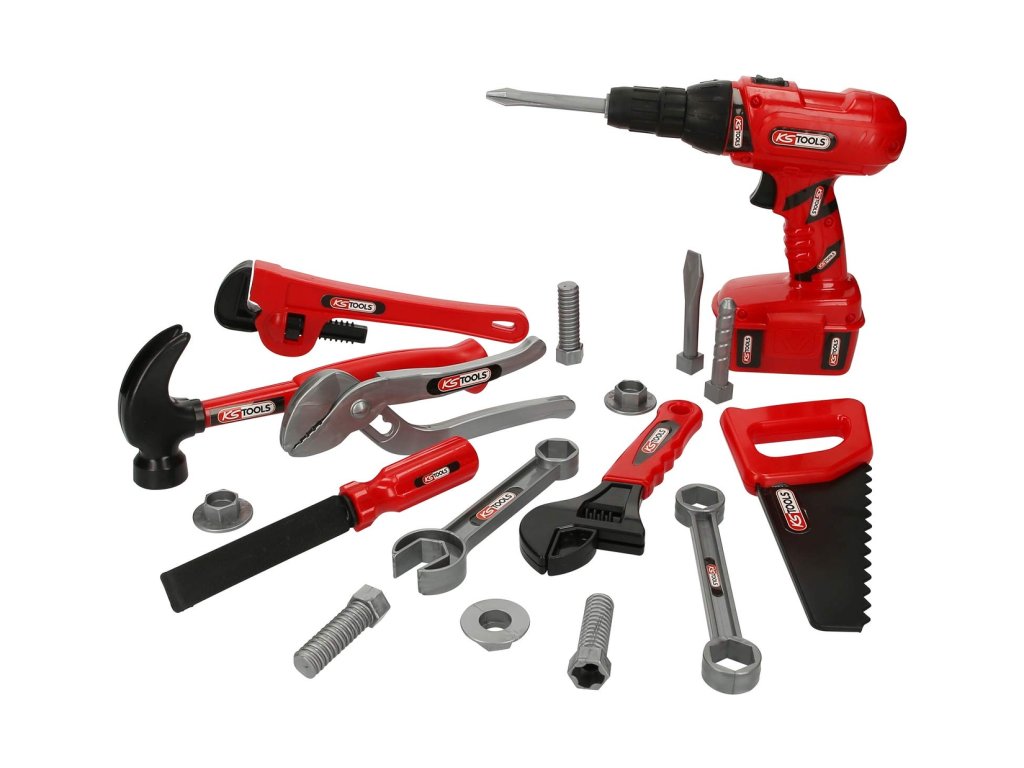 Dětská sada nářadí - AKU šroubovák, kladivo, pila, klíče, 19 dílů v přepravce - KS TOOLS
