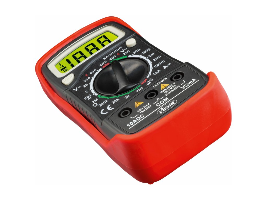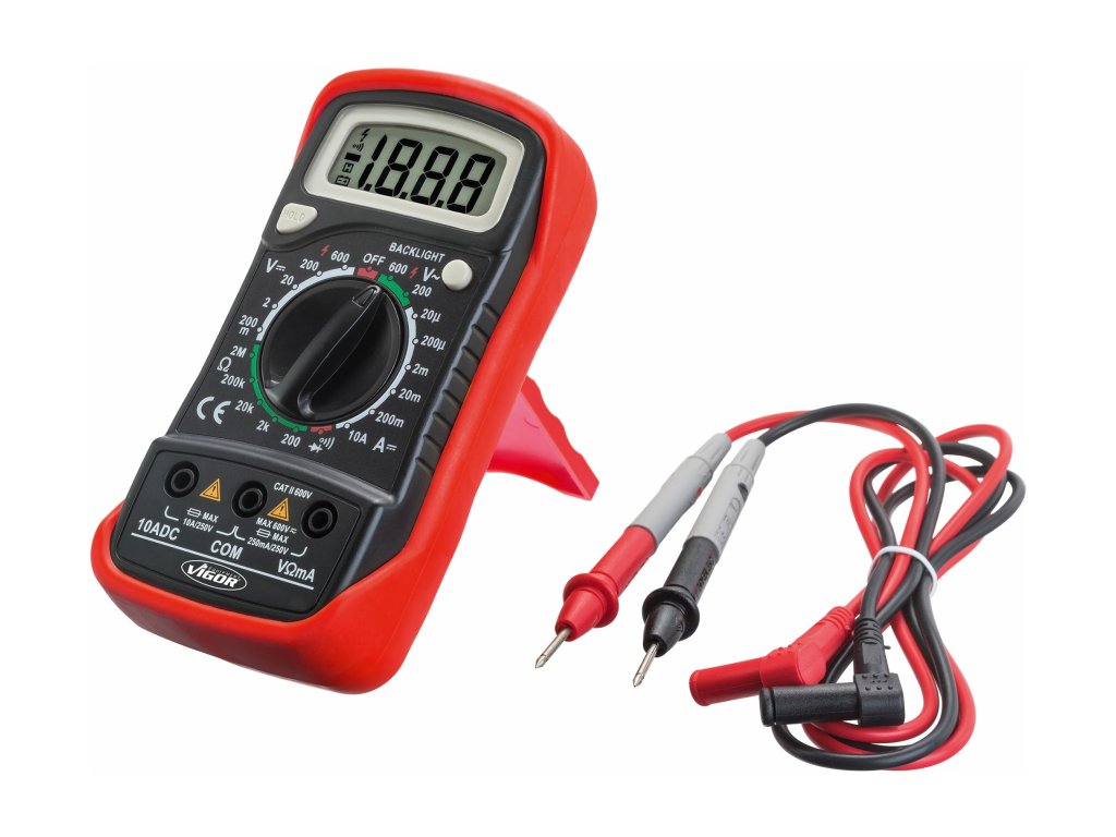 Zkoušečka napětí a proudu – multimetr, digitální s LCD displejem, napájení baterií 9V – VIGOR V4324