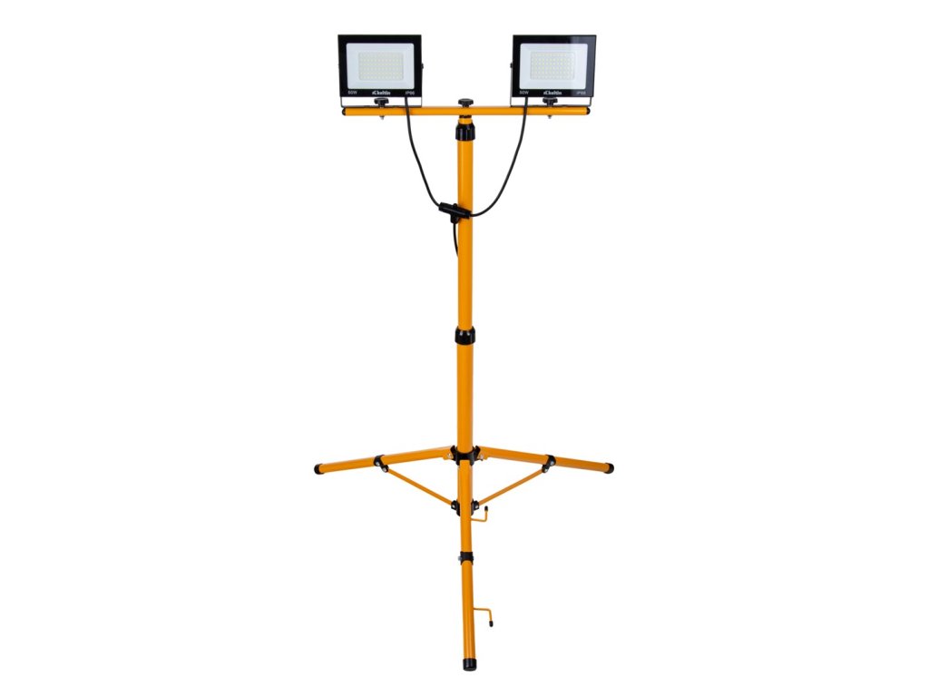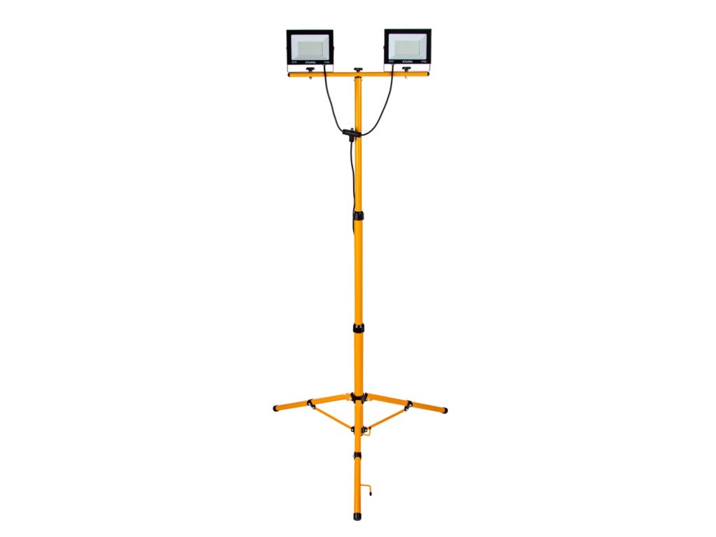 Dílenská lampa LED SMD, dvě lampy, výkon 2x 50 W (svítivost 2x 4500 lm), na teleskopickém stojanu, barva světla studená bílá (6500K), napájení 230 V, rozsah výšky stojanu 60-160 cm
