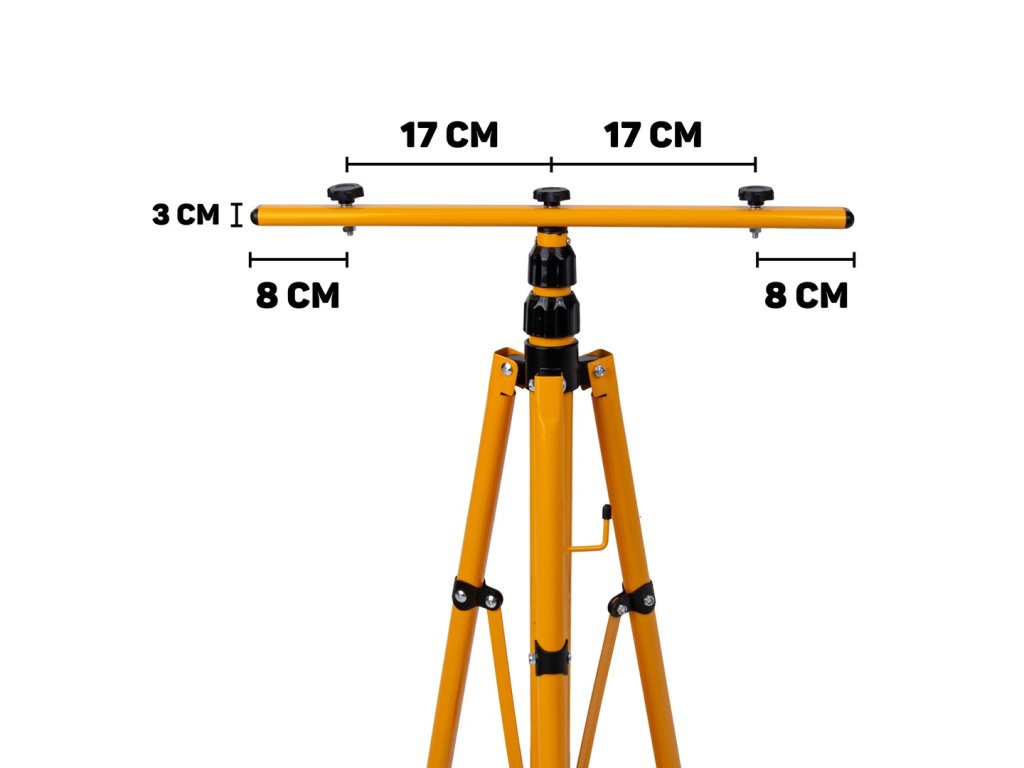 Teleskopický stativ je vyroben z odolného kovu a umožňuje stabilní a pohodlné nasazení. Nastavitelná výška od 60 cm do 160 cm umožňuje flexibilní použití podle potřeb osvětlení. Díky plynule fungujícím plastovým šroubům je regulace výšky rychlá a intuitivní.
