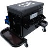 Vysoce praktické a robustní sedátko pro práci v autoservisu, dílně apod. Díky 3 zásuvkám, 2 bočním poličkám a zadnímu držáku poskytuje spoustu místa k odložení nářadí, pomůcek nebo např. dílů vymontovaných z vozidla.
