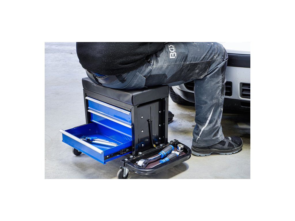 Dílenské montážní sedátko pojízdné, se zásuvkami, poličkami a držáky - BGS 2859