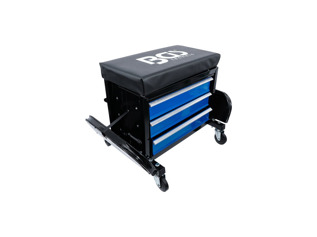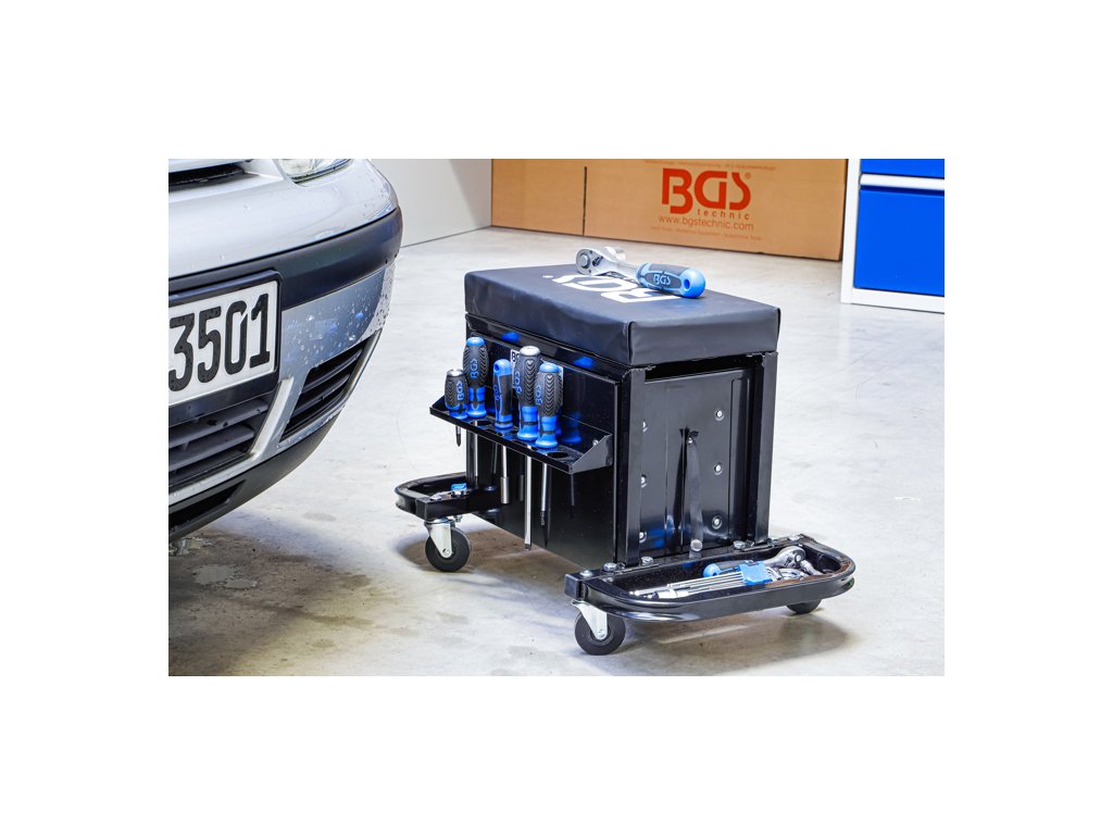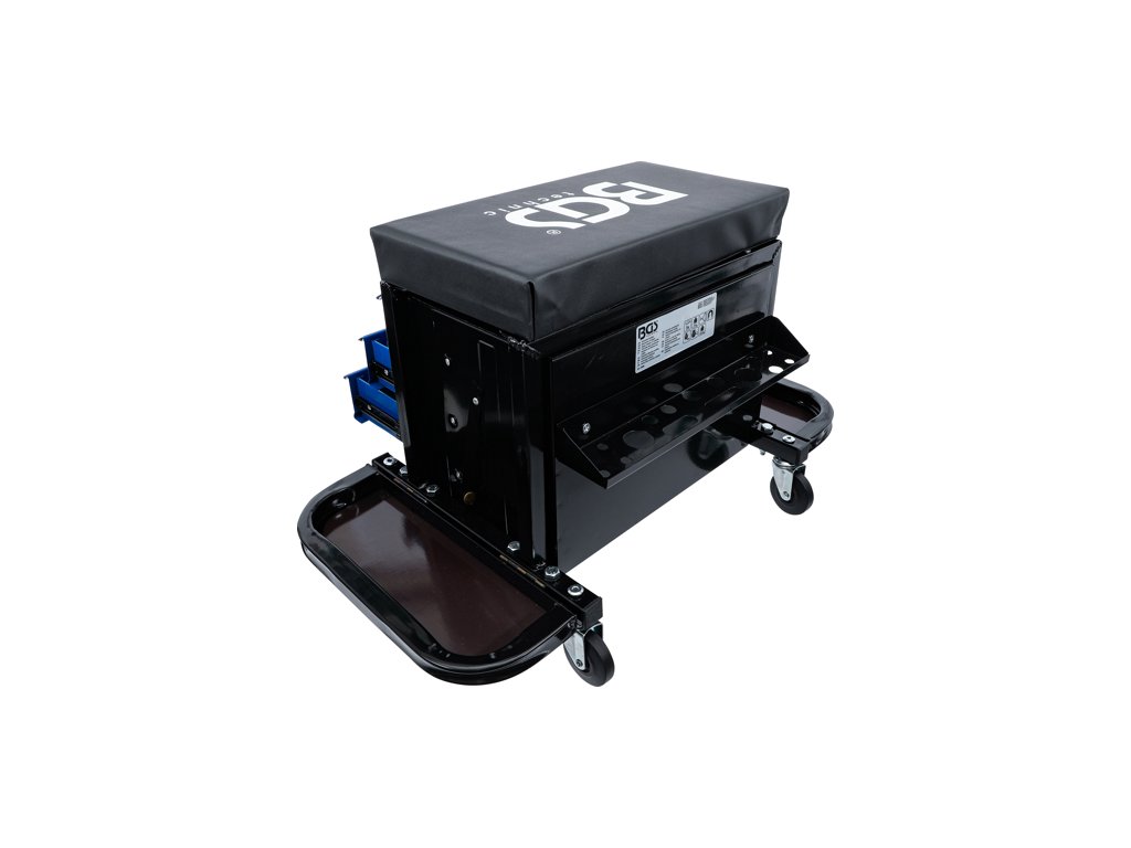 Pojízdné dílenské sedátko, tzv. štokrle, s měkkým polstrováním a úložnými prostory, nosnost 150 kg - BGS technic 2859