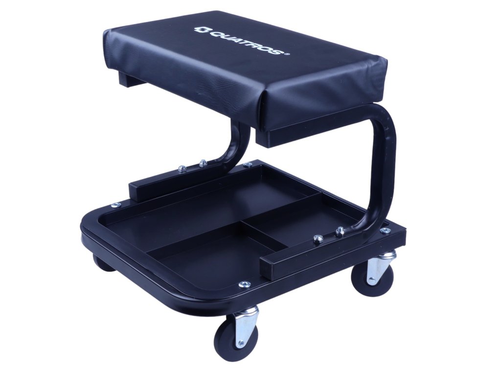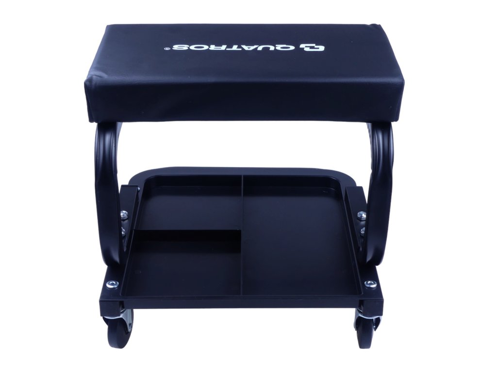 Montážní sedátko „taburet“, pojízdné na kolečkách, s přihrádkami, kovová konstrukce s polstrováním – QUATROS QS19407