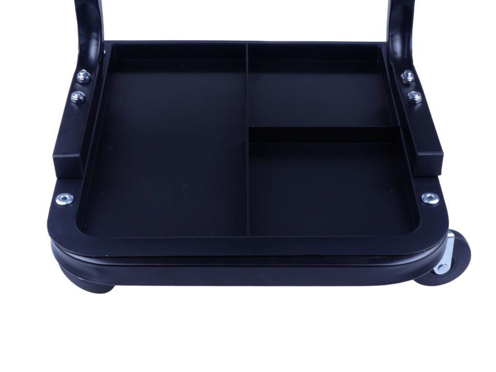 Praktická stolička pro autoservis, dílnu a podobné provozy. Umožňuje pohodlné usazení při práci na spodních částech auta (např. při opravách brzd, servisu náprav, prahů atd.).