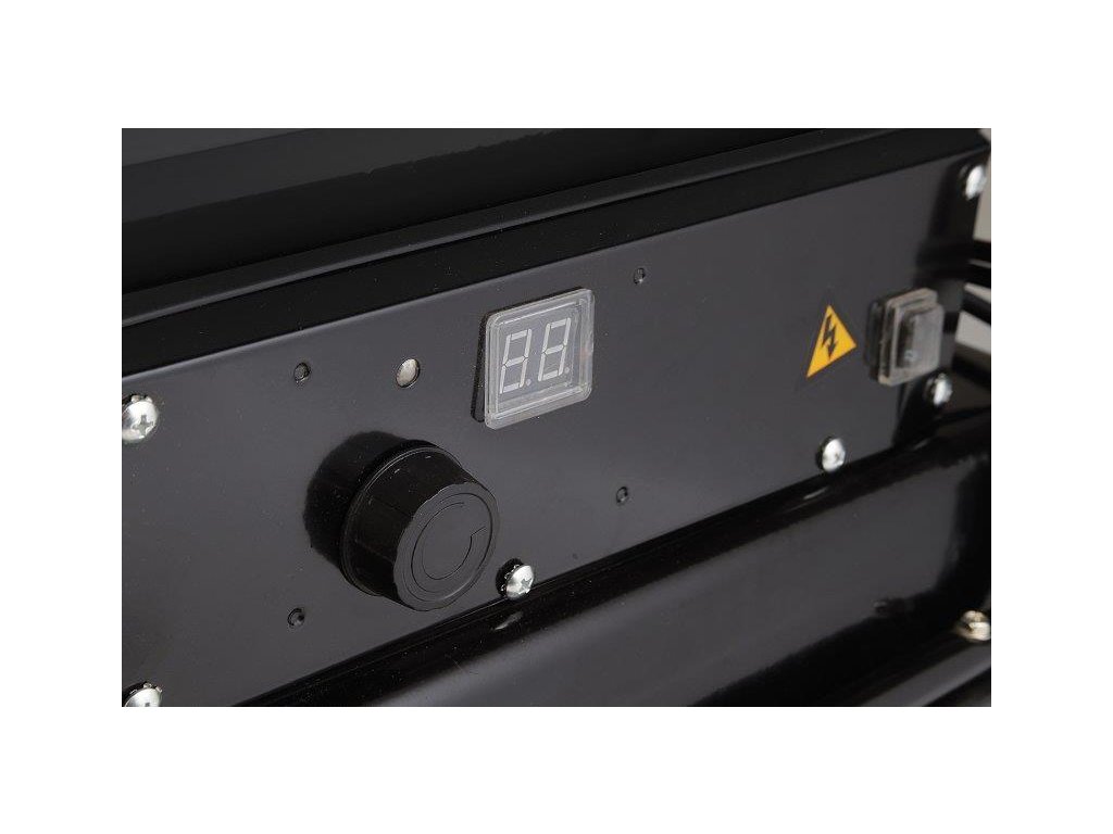 Snadné ovládání pomocí ovládacího knoflíku, teplota se zobrazuje na digitálním ukazateli. Zapínání a vypínání topidla se prování pomocí kolébkového spínače s krycí gumovou manžetou proti pronikání vlhkosti.